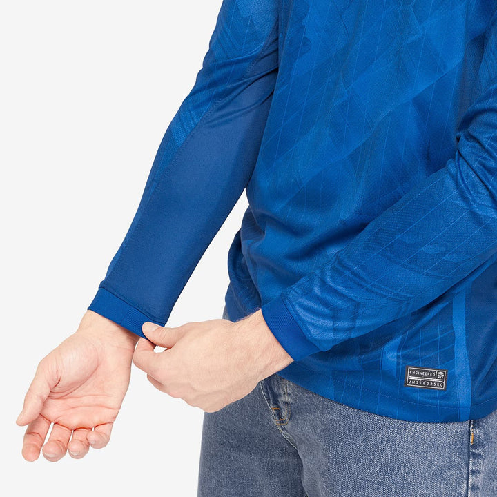 A Camisa Nike Chelsea 2025/26 I Manga Longa Torcedor é feita pra quem vive o futebol intensamente. Um modelo pensado no torcedor que carrega seu time no peito, em qualquer ocasião.