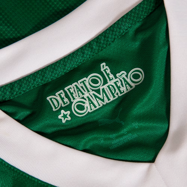 Produzida pela Puma, essa camisa carrega no tecido, nas costuras e no peito a história de um gigante, com grafismos exclusivos em relevo que homenageiam as glórias alviverdes, a tradição da Sociedade Esportiva Palmeiras e o amor incondicional da torcida que não para nunca.