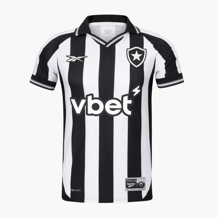 A camisa titular do Botafogo para 2025/26 resgata a essência do clube com imponência. As faixas verticais em preto e branco ganham textura exclusiva e acabamento premium, com o escudo monocromático bordado no peito como símbolo de identidade. Um uniforme pensado para o torcedor que vive o Glorioso com intensidade e estilo.