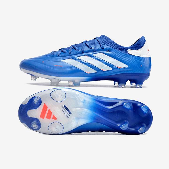 Der adidas Copa Pure 2+ Elite FG kombiniert klassisches Copa-Erbe mit modernster adidas-Technologie. Diese schnürungslose Version in Blau mit weißen Details liefert präzises Ballgefühl, Stabilität und Komfort – perfekt für Spieler, die auf Naturrasen dominieren wollen.