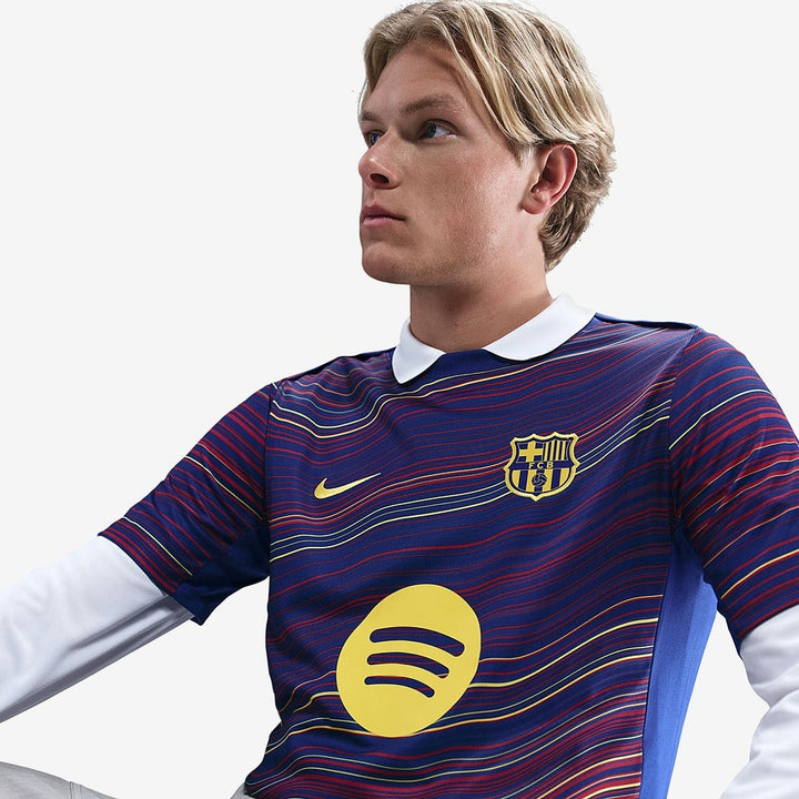 Com tecido leve e respirável, essa camisa Barcelona 2025/26 Pré-Jogo garante conforto total, seja no dia a dia ou na arquibancada. A tecnologia de absorção de suor mantém você seco e focado, enquanto os detalhes idênticos ao jogo, como o escudo e os logos em alta definição, reforçam o amor pelo clube.