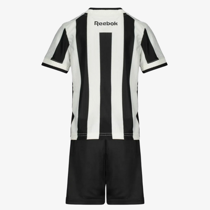 O Conjunto Infantil Reebok Botafogo 2025/26 I é ideal para os pequenos torcedores alvinegros que já carregam o Glorioso no coração. Inspirado no uniforme titular da temporada, traz a clássica camisa listrada em preto e branco com gola diferenciada e short preto, formando um conjunto imponente, leve e confortável para o dia a dia ou para vibrar com o Fogão.