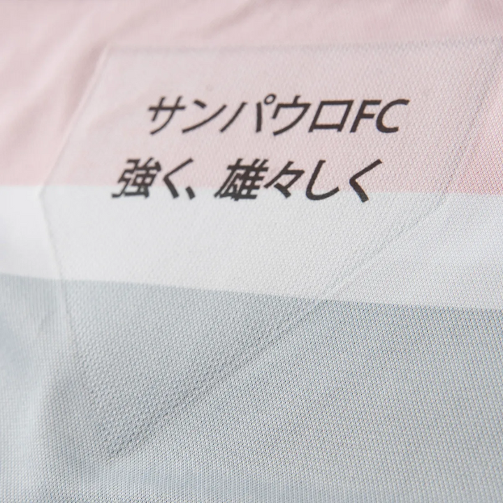 No verso da gola, o minuto 51:09 marca o início do lance da icônica defesa do goleiro na decisão. Na barra interna, a inscrição orgulha o torcedor: único time brasileiro tricampeão mundial. Dentro do escudo, a frase em japonês “São Paulo FC / Tu és forte, tu és grande” reforça o hino e a grandeza do clube. Confeccionada em materiais resistentes e tecnológicos, oferece conforto, durabilidade e desempenho de nível profissional.