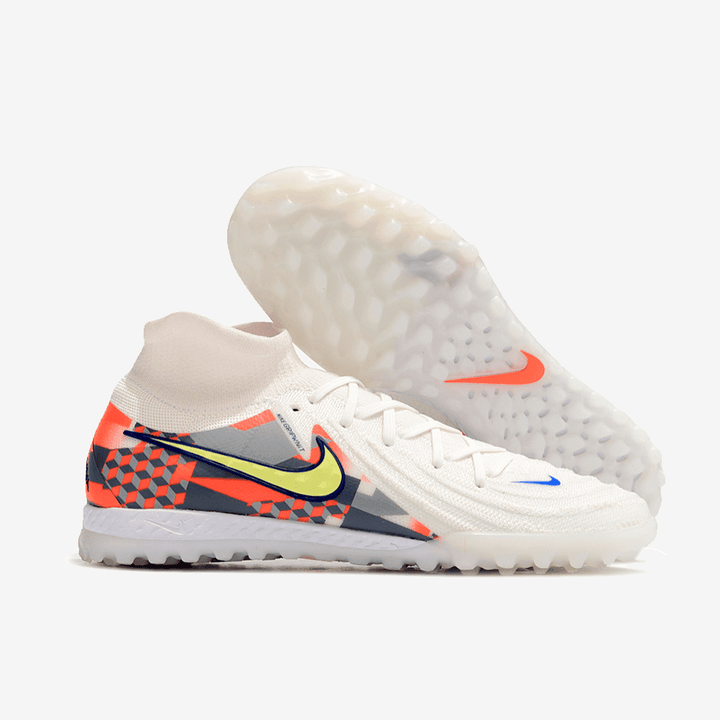 Der Nike Phantom Luna 2 Pro TF kombiniert innovatives Design mit professioneller Performance und wurde speziell für Spiele auf Kunstrasen- und Hartplätzen entwickelt. Im auffälligen Weiß-Multicolor-Design mit pink-blauen Akzenten sorgt er für maximale Aufmerksamkeit und präzises Spiel.