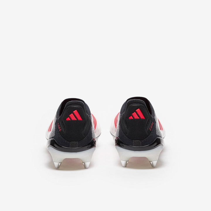 Der adidas Copa Pure 3 Elite SG – schnürungslos bringt minimalistisches Design und maximale Ballkontrolle auf weichen Naturrasen. Diese Variante in Weiß mit roten Details und schwarzem Schaft kombiniert klassische Eleganz mit modernster Technologie – ideal für Spieler, die auf feuchten und tiefen Plätzen dominieren.