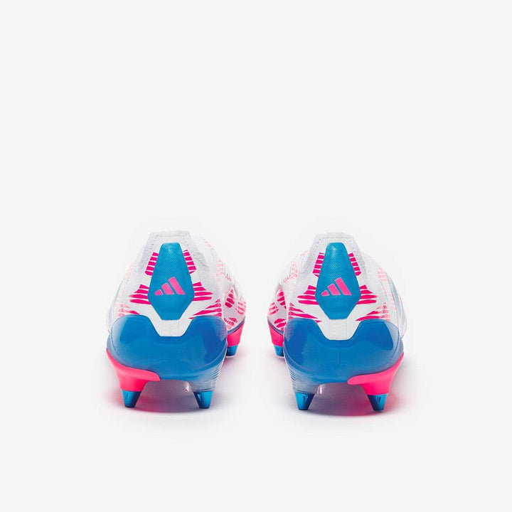Der adidas Predator Elite SG – Schnürungslos wurde für Spieler entwickelt, die auf weichen und nassen Naturrasenplätzen maximale Schusskraft, Ballkontrolle und Stabilität verlangen. Mit seinem auffälligen Design in Weiß mit blauen und pinken Akzenten vereint er die ikonische Predator-DNA mit modernster adidas-Technologie.
