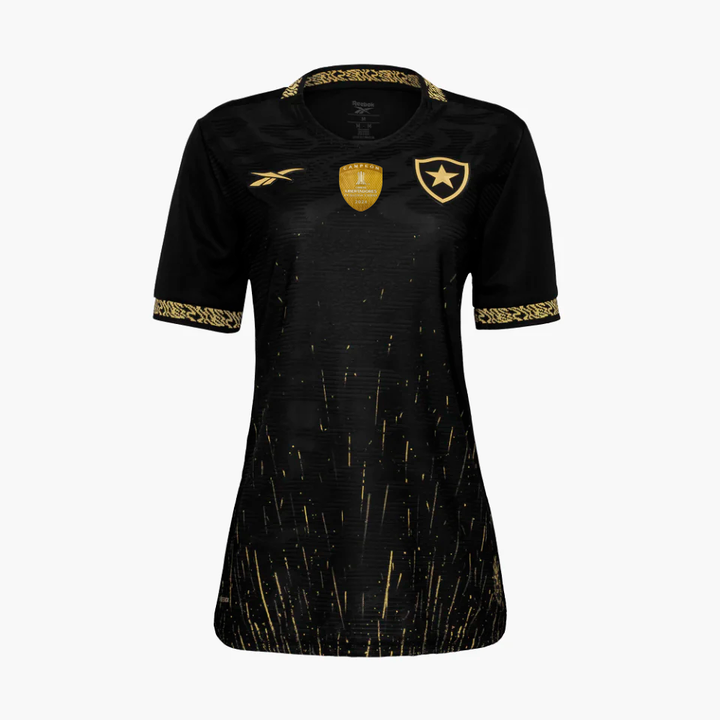 A nova camisa II do Botafogo é um manifesto de ousadia e elegância. Em preto com detalhes dourados, essa peça da temporada 2024/25 traz um design moderno e impactante, com grafismos exclusivos que representam o brilho e a força do Glorioso. Feita especialmente para o público feminino, entrega caimento perfeito, conforto e estilo sem abrir mão da identidade alvinegra.